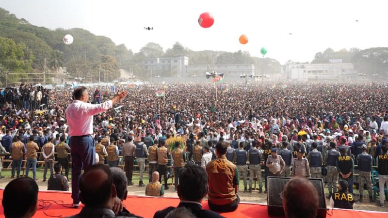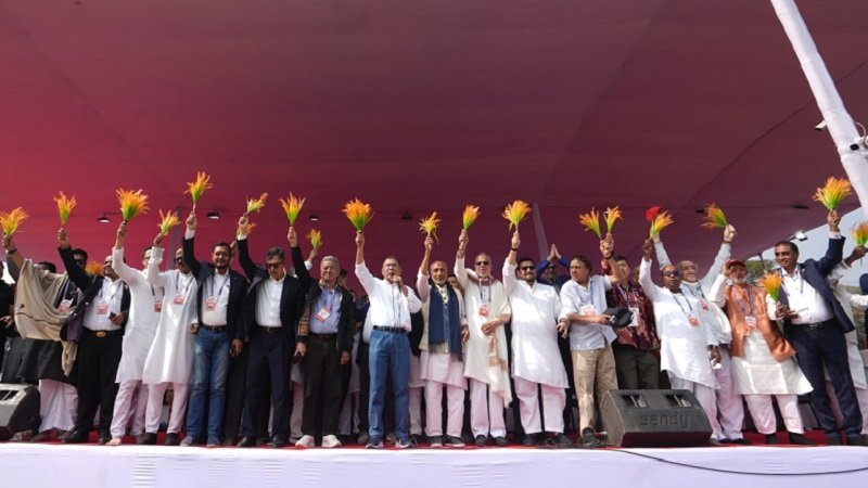 এর আগে রোববার বেলা ১২টা ১৪ মিনিটে কঠোর নিরাপত্তার মধ্য দিয়ে মঞ্চে ওঠেন তারেক রহমান। সে সময় মুহুমুর্হু করতালিতে পুরো সমাবেশস্থল মুখরিত হয়ে উঠে।