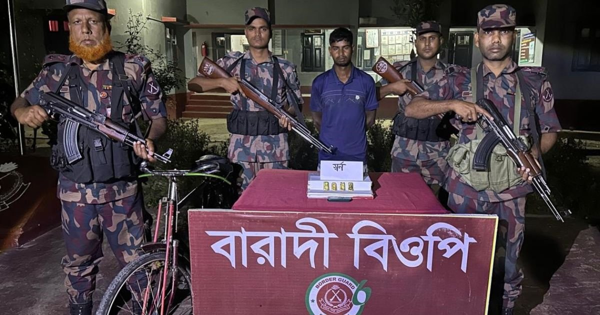 উদ্ধারকৃত স্বর্ণ ও সরঞ্জাম পরবর্তীতে বেসামরিক সাক্ষীদের উপস্থিতিতে আটক ব্যক্তির দেহ তল্লাশি করা হয়। তল্লাশিকালে তার কাছে থাকা সবুজ টেপ দিয়ে মোড়ানো একটি পোটলার ভেতরে ৪টি স্বর্ণের বার পাওয়া যায়। ডিজিটাল স্কেলে ওজন করে দেখা যায়, স্বর্ণের বারগুলোর মোট ওজন ৪৫২ গ্রাম। যার বর্তমান বাজার মূল্য ৯৬ লাখ ৯ হাজার ৫২০ টাকা। এছাড়া তার কাছ থেকে একটি মোবাইল ফোন ও একটি বাইসাইকেল জব্দ করা হয়েছে।