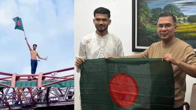 ফ্লাইওভারের ওপর উড়ানো সেই পতাকা তারেক রহমানকে উপহার দিলেন মুত্তাকিন