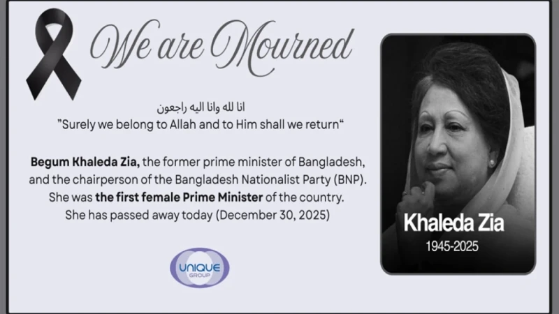 বিএনপি চেয়ারপারসন ও তিনবারের সাবেক প্রধানমন্ত্রী বেগম খালেদা জিয়ার মৃত্যুতে শোক প্রকাশ করেছে দেশের অন্যতম বৃহৎ শিল্পগোষ্ঠী ইউনিক গ্রুপ। মঙ্গলবার (৩০ ডিসেম্বর) তারা এ শোক জানায়।