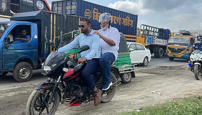 পথে আশুগঞ্জের সোনারামপুর এলাকায় তিনি প্রায় দুই ঘণ্টা যানজটে আটকে ছিলেন। যানজটে থাকার কারণে উপদেষ্টা একপর্যায়ে গাড়ি থেকে নেমে হাঁটা শুরু করেন। এরপর বাহাদুরপুর এলাকায় তিনি একটি মোটরসাইকেলে করে বিশ্বরোডের দিকে রওনা হন। সঙ্গে আরেকটি মোটরসাইকেলে ছিলেন উপদেষ্টার বিশেষ সহকারী শেখ মঈনউদ্দীন। তিনি বেলা ১টার দিকে সরাইল বিশ্বরোড মোড়ে পৌঁছান।