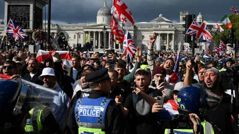 লন্ডনের মেট্রোপলিটন পুলিশ জানায়, ডানপন্থি কর্মী টমি রবিনসনের উদ্যোগে আয়োজিত “ইউনাইট দ্য কিংডম” শীর্ষক মিছিলে প্রায় ১ লাখ ১০ হাজার মানুষ অংশ নেন। অপরদিকে, “স্ট্যান্ড আপ টু রেসিজম” নামের পাল্টা সমাবেশে যোগ দেন প্রায় ৫ হাজার মানুষ। উভয় পক্ষকে আলাদা রাখতে ব্যাপক পুলিশ মোতায়েন করা হয়।