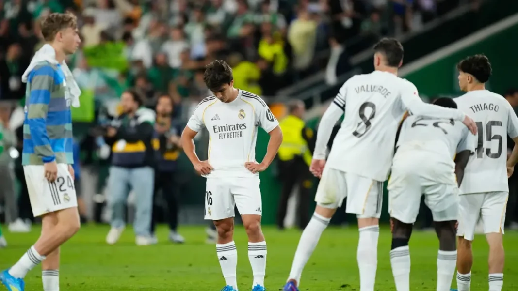 লা লিগার শিরোপার দৌড়ে বার্সেলোনার সঙ্গে ব্যবধান কমানোর সুযোগ হাতছাড়া করেছে রিয়াল মাদ্রিদ। রিয়াল বেটিসের মাঠে শুক্রবার রাতে ১-১ গোলে ড্র করেছে লস ব্লাঙ্কোসরা। যোগ করা সময়ের (৯৪ মিনিট) গোল হজম করায় জয় থেকে বঞ্চিত হয় তারা।